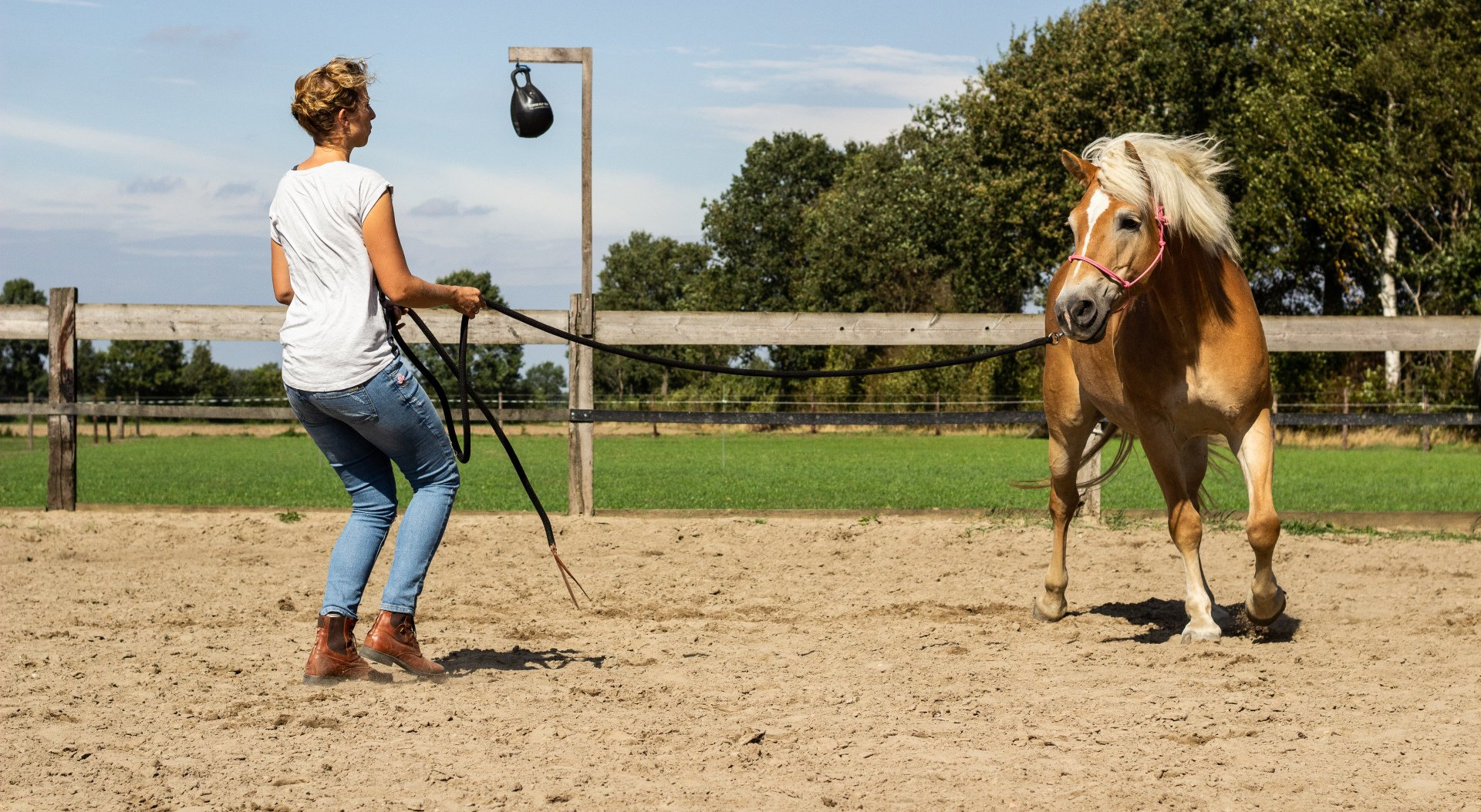 Wie in den vorangegeangenen Artikeln bereits beschrieben brauchen wir verschiedene Tools, um das Pferd von der inneren Schulter weg zu bekommen. Um dem Pferd zu helfen sich nach außen bzw. oben auszubalancieren, sollte ein Training an der Longe zu Anfang sehr langsam aufgebaut werden. Das bedeutet, wir fangen in einem fleißigen Schritt an. Hier ist auf eine leichte Stellung zu achten und darauf, dass die Schulter des Pferdes nach außen/ oben geschickt wird. Achtung, Pferde neigen dazu über die Schulter wegzulaufen, da ihnen diese Art des Laufens oft erst sehr schwerfällt. Habt Geduld, mit ein wenig Übung und dem richtigen Blick wird das für euch leicht erkennbar. Lasst das Pferd viele Handwechsel laufen, so muss es sich immer wieder neu sortieren, und die linke und rechte Gehirnhälfte wird angesprochen. Außerdem erreichst du durch viele Handwechsel, und damit dem Umlasten des Pferdes, das sich das Pferd mit dem Gewicht nach hinten ausrichtet. Wenn ein Pferd sein Gewicht vorne trägt, muss es sich von einer auf die andere Hand werfen, trägt es jedoch sein Gewicht hinten, hat es die Vorhand frei und kann spielerisch die Wechsel laufen. Für den Handwechsel rufst du dir dein Pferd in die Mitte, tauschst beim Rückwärtslaufen dein Seil und die Gerte. Dann bleibst du stehen und zeigst mit der Gerte auf die äußere Schulter, bis das Pferd an dir vorbei gewechselt hat. Wichtig ist hier, dass dein Pferd dir Platz macht und nicht umgedreht. Achtung einer der häufigsten Fehler beim Handwechsel ist das Platzmachen deinerseits. Lass dein Pferd um dich wechseln. Bleib auf deiner Position und bestimme den Weg des Pferdes. Viel Erfolg!